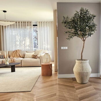 ELYS beige hoge bloempot plantenbak travertin japandi 62cm