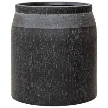 SOORTStijlvolle design bloempot in all black. De bloempot heeft een luxe uitstraling, een prachtige strakke voluptueuze vorm en een verfijnde afwerking. Een pareltje van kunststofsteen met heerlijk matte beton uitstraling.