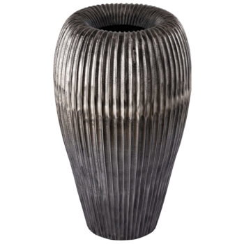 SOORTHeerlijk grote bloempot met subtiel breed gelaagde ribpatroon in intens charcoal aarde kleur. Handgemaakt en een stralend middelpunt in je interieur of tuin. Geschikt voor binnen en buiten.