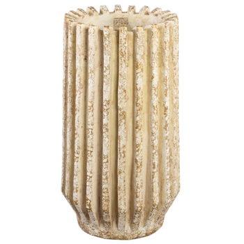 SOORTHeerlijk grote bloempot met subtiel breed gelaagde ribpatroon in zacht zandkleur. Handgemaakt en een stralend middelpunt in je interieur of tuin. Geschikt voor binnen en buiten.