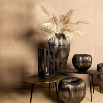 SOORTFijne set van drie plantentafels in antiek aluminiumlook. De verschillende hoogtes zorgen voor een visueel stijlvol effect. Het ontwerp is luxe en een tikkeltje stoer. Geef je bloempotten de zichtbare en stralende plek die ze verdienen.