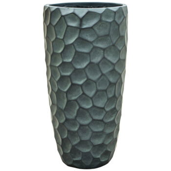 SOORTHoge prachtig vormgegeven bloempot in mat blauw groen. Het reliëf speelt met het licht waardoor je veel diepte krijgt. Met subtiel en opliggend grillig honingraadpatroon. Al jaren één van onze favoriete designs in een nieuwe matte uitvoering.