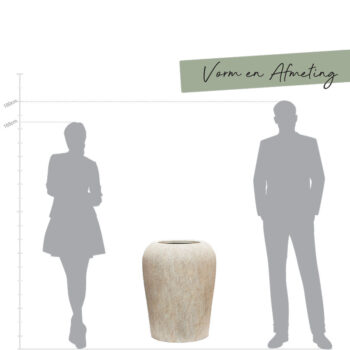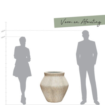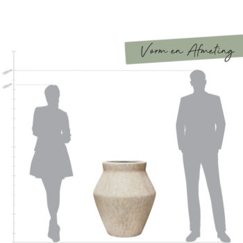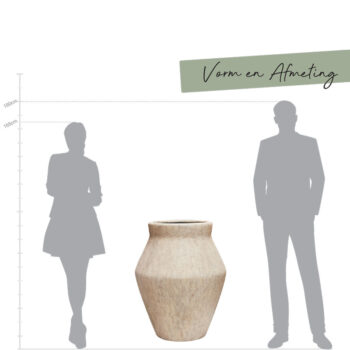 Afmeting: 55 x 55 x 68 cm Opening: 42 cm Diepte: 53 cm Kleur: Zand Aantal: 1 stuk Artikelnummer: 2150 Gebruik: outdoor, voor gebruik indoor kunt u een binnenvaas bijbestellen via deze link. Bijna al onze potterie handgemaakt en daarom uniek in patroon, kleuring en niet 100% waterdicht. Een binnenvaas is ideaal om duurzaam te genieten van alle indoor geplaatste potterie. En om eenvoudig te wisselen van inhoud en styling.