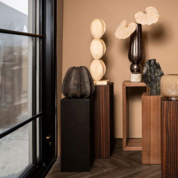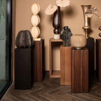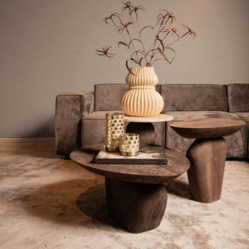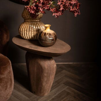 SOORTStijlvolle en luxe design bijzettafel voor je allermooiste bloempot. Het robuuste ontwerp is van warm donkerbruin mangohout in een prachtige organische vormgeving. Een pareltje voor op een mooi plekje in je huis.