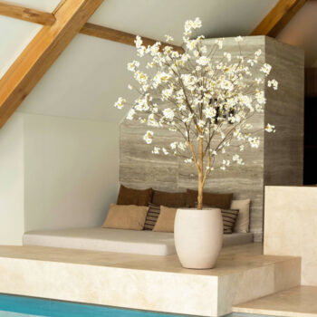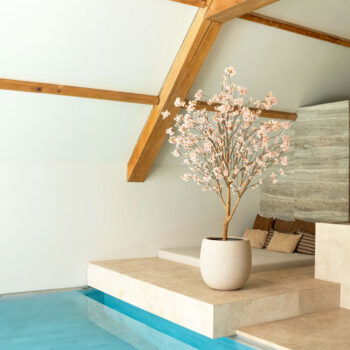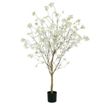 SOORTAltijd lente in huis! Prachtige creme wit bloesemboom op een echte houten stam. Verfijnd en stijlvol voor een speelse en luxe uitstraling. High quality kunstplant met sierlijke bloesem en levensechte bladeren. De charme van een echte bloesemboom zonder de zorgen.