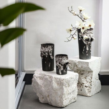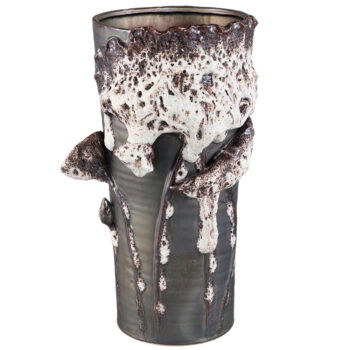 SOORTSpeelse vaas met bijzondere vormgeving. Stijlvol keramiek in zwart met een verticale baan in houtdessin. Een pareltje voor op een mooi plekje in je huis en heel mooi om te combineren met de andere vazen uit deze lijn. Leuk om te vullen met wat takjes of losse bloemen uit je eigen tuin.