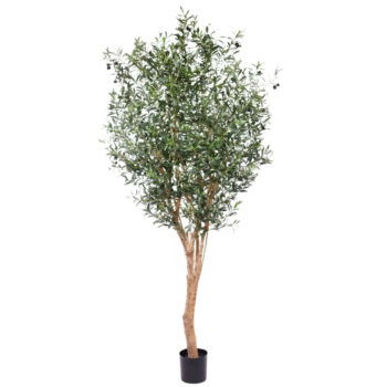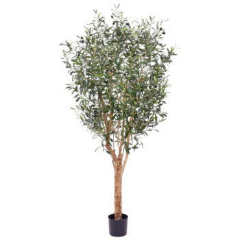 SOORTDeze prachtige volle en extra hoge olijfboom op rustieke stam met groen blad en olijfjes brengt je terug naar heerlijke, mediterrane zomers. Niet van echt te onderscheiden high quality kunstplant. Mooi in een grote pot.