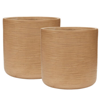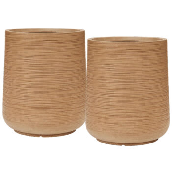 Afmeting: 42 x 42 x 38 cm & 50 x 50 x 55 cm Opening: 33 cm & 39 cm Diepte: 35 cm & 53 cm Kleur: Sahara zand bruin Aantal: 2 stuks Artikelnummer: 3509 Gebruik: outdoor, voor 100% waterdichtheid kunt u een binnenvaas bijbestellen via deze link. Bijna al onze potterie handgemaakt en daarom uniek in patroon, kleuring en niet 100% waterdicht. Een binnenvaas is ideaal om duurzaam te genieten van alle indoor geplaatste potterie. En om eenvoudig te wisselen van inhoud en styling.