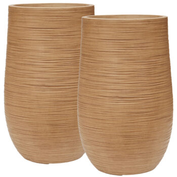 SELAA beige bruine design bloempotten plantenbakken set hoog en groot 38 & 55cm