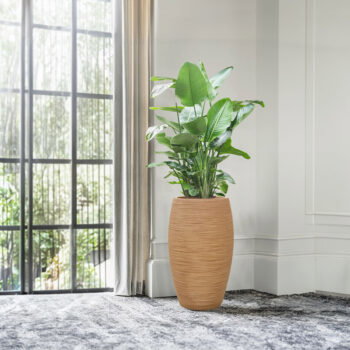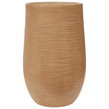 Afmeting: 53 x 53 x 88 cm Opening: 40 cm Diepte: 86 cm Kleur: Sahara zand bruin Aantal: 1 stuk Artikelnummer: 3532 Gebruik: outdoor, voor 100% waterdichtheid kunt u een binnenvaas bijbestellen via deze link. Bijna al onze potterie handgemaakt en daarom uniek in patroon, kleuring en niet 100% waterdicht. Een binnenvaas is ideaal om duurzaam te genieten van alle indoor geplaatste potterie. En om eenvoudig te wisselen van inhoud en styling.