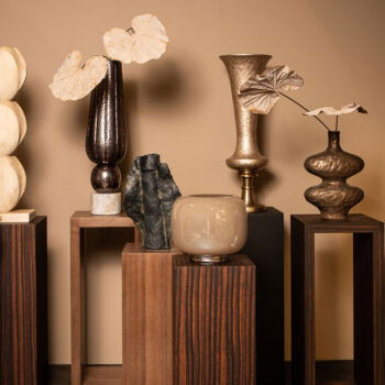 LYSSE XL grote vaas design kelkvaas bruin met gouden voet 93cm