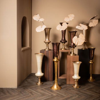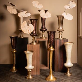 LYSSE XXL hoge vaas design kelkvaas bruin met gouden voet 109cm