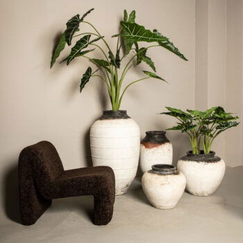 Bijna al onze potterie handgemaakt en daarom uniek in patroon, kleuring en niet 100% waterdicht. Een binnenvaas is ideaal om duurzaam te genieten van alle indoor geplaatste potterie. En om eenvoudig te wisselen van inhoud en styling.