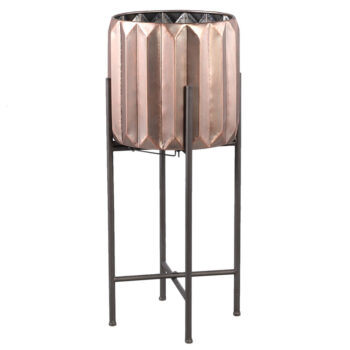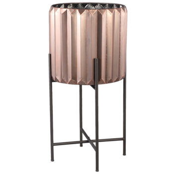 ELEZA koper plantenbak op poten rose goud vaas op zwarte voet 66cm