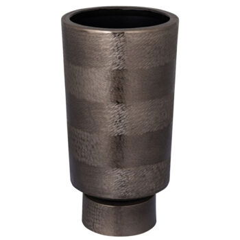 SOORTMooie hoge gestroomlijnde design vaas of als bloempot te gebruiken. Het mat brons zwart geborsteld aluminium met de fijn, zacht patroon maakt deze vaas tot een pareltje voor in je interieur.