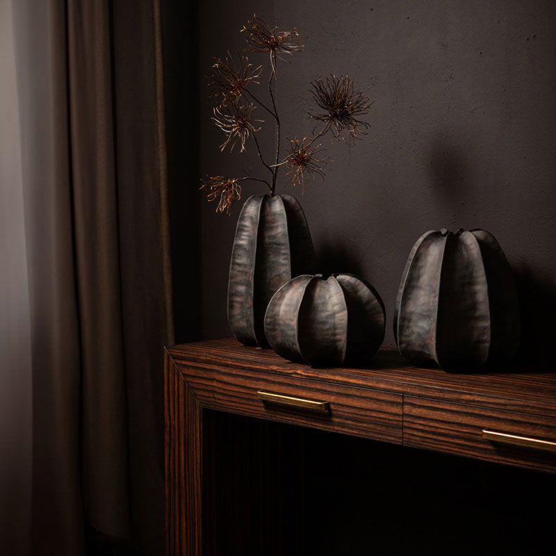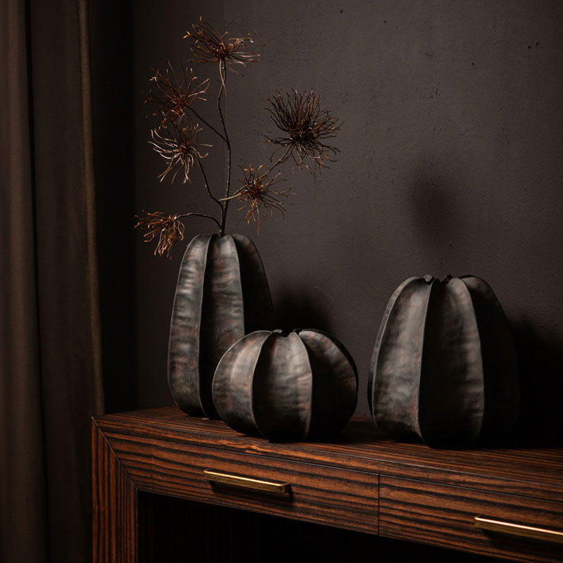 ANOA grote design vaas decoratievaas zwart brons keramiek 34cm