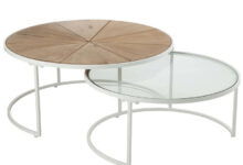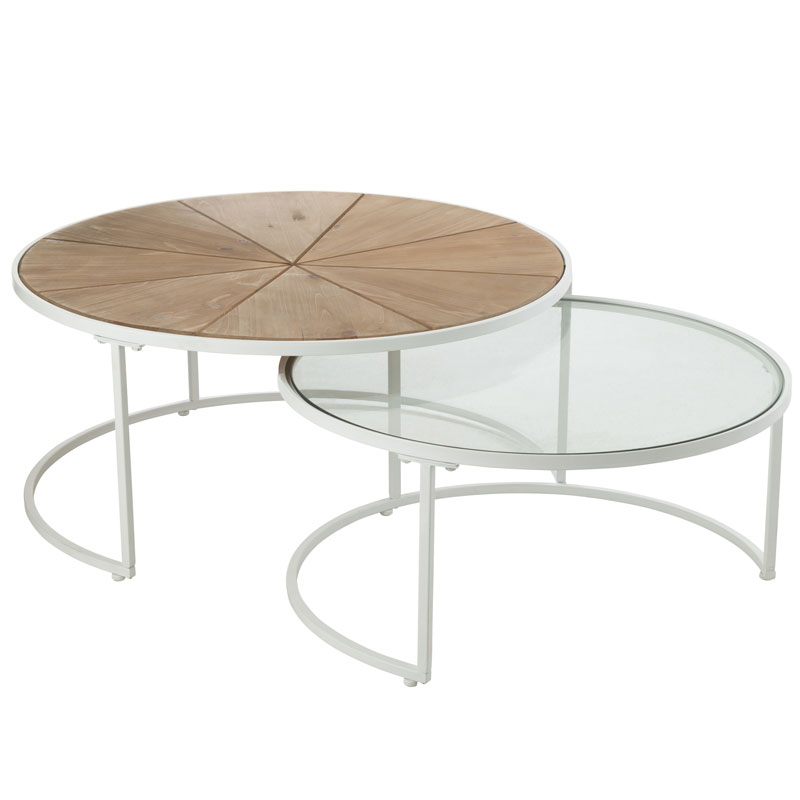CIBEY witte ronde bijzettafel set plantentafels met hout 71cm & 91cm breed