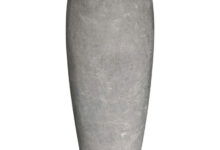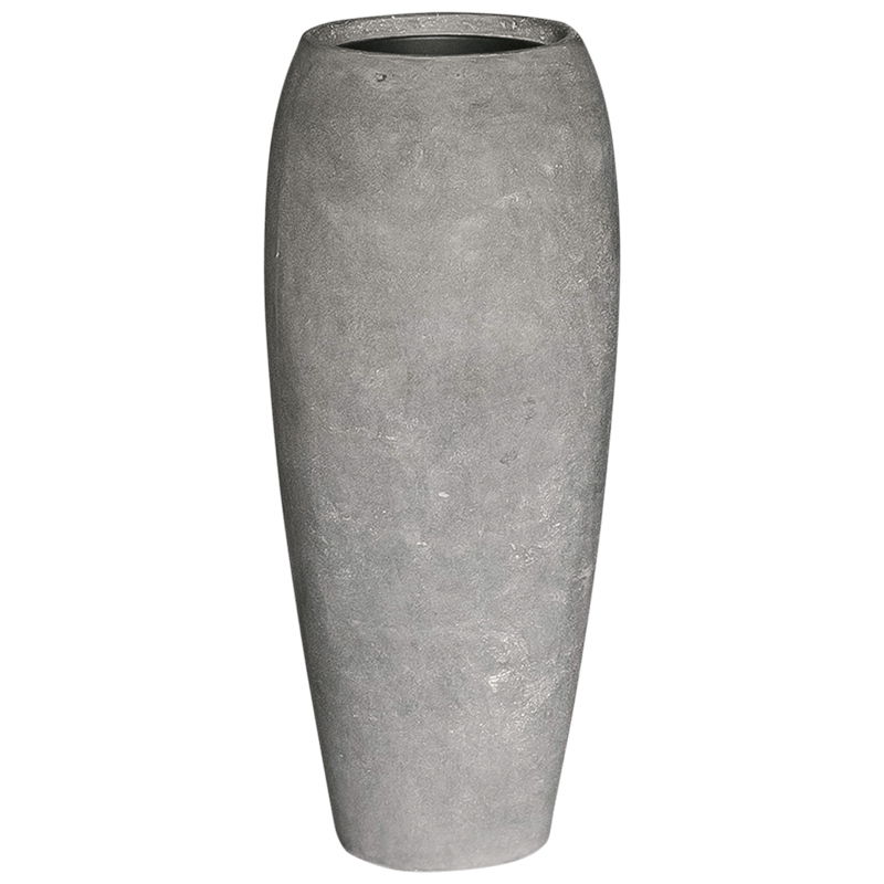 Hoge bloempot vaas met bijzondere elegante vorm in zachte kalksteen uitstraling. Van licht gewicht maar hoge kwaliteit kunststofsteen. Deze HQ lijn is zowel buiten als binnen te gebruiken.