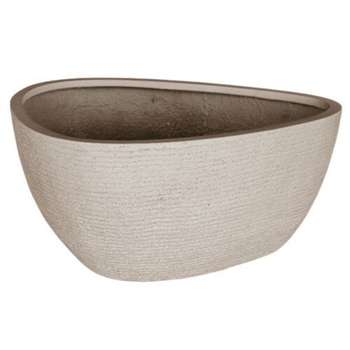 Heerlijke grote design plantenbak met subtiel breed gelaagde ribpatroon in zacht zandkleur. Handgemaakt en een stralend middelpunt in je interieur of tuin. Geschikt voor buiten maar ook geweldig voor binnen met een mooie kunstboom of kunstplanten.