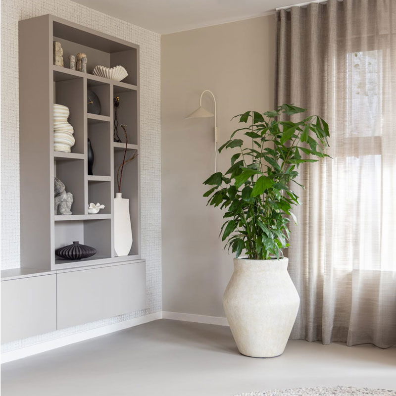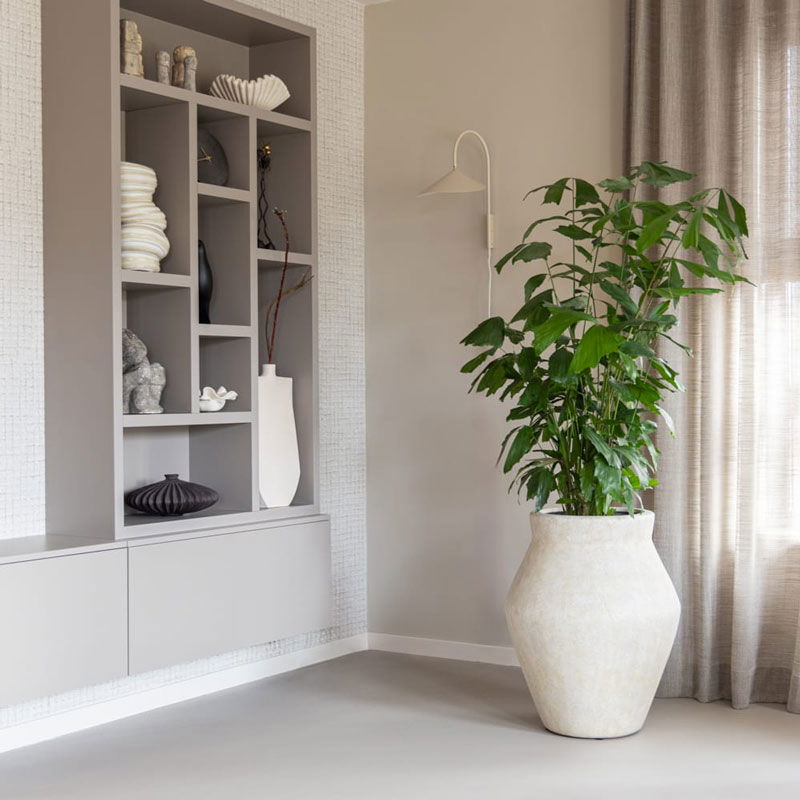Bijna al onze potterie handgemaakt en daarom uniek in patroon, kleuring en niet 100% waterdicht. Een binnenvaas is ideaal om duurzaam te genieten van alle indoor geplaatste potterie. En om eenvoudig te wisselen van inhoud en styling.