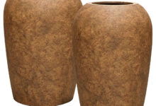 Prachtige hoge design bloempotten set voor buiten met zachte vorm. En extra bijzonder; deze vaas heeft een authentiek travertijn-kalksteenlook maar is van hoogwaardig en sterk ficonstone. Dat maakt het mogelijk om door weer en wind van de aardse uitstraling van kalksteen te genieten. Een uniek element voor in de tuin of op het terras.