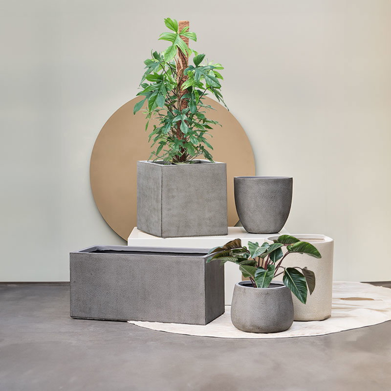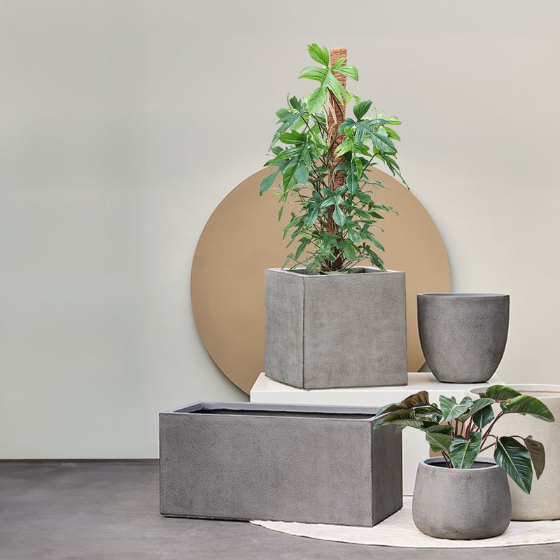 Wat een beauty van een handgemaakte high quality design plantenbakken. Heerlijk strak en toch in een zachte kleur met licht beige gloed als ondertoon. Een luxe uitstraling en een verfijnde licht ruwe afwerking in gemeleerde kleuring.