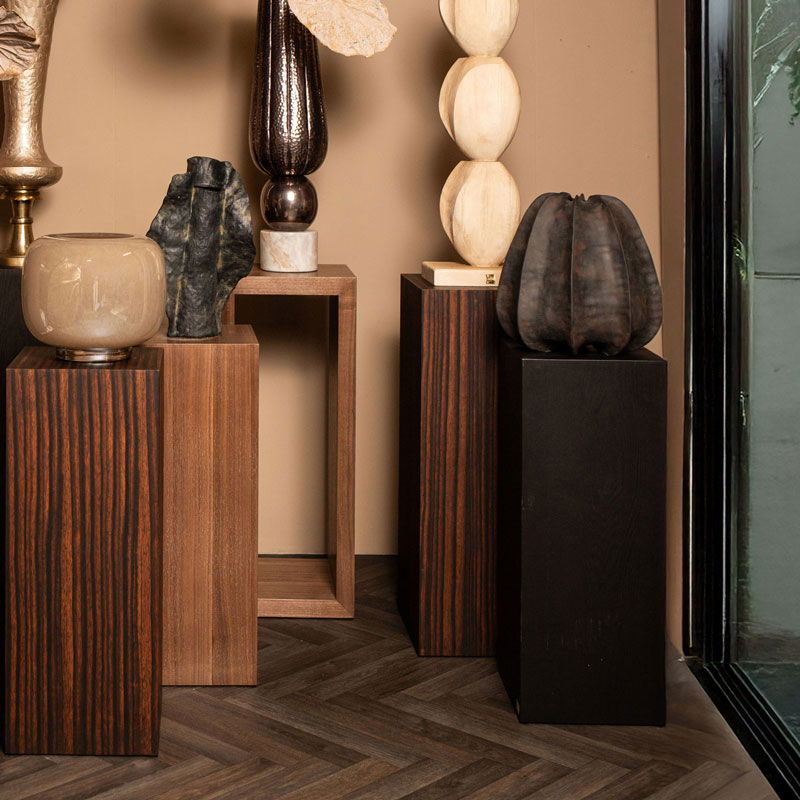 Set hoge robuuste plantenzuilen. Strak design met prachtig zichtbare nerven en noesten. Een luxe en veelzijdige look om je interieur mee te stylen. Geef je bloempotten de zichtbare en stralende plek die ze verdienen.