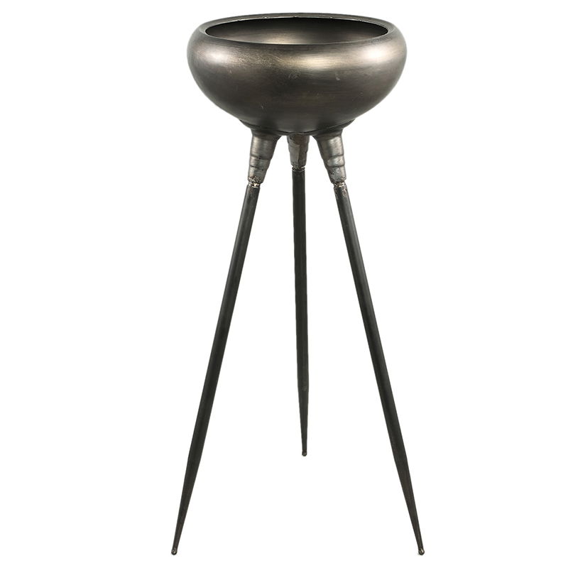 Fijn bloempot in een rustieke vorm en kleur op drie hoge poten. Een prachtige oplossing om een lege hoek sfeervol op te vullen.