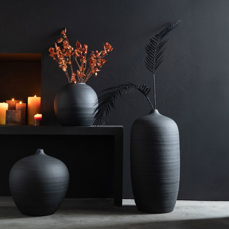 JARR zwarte vaas kruik voor binnen aardewerk decoratievaas mat zwarte 60cm