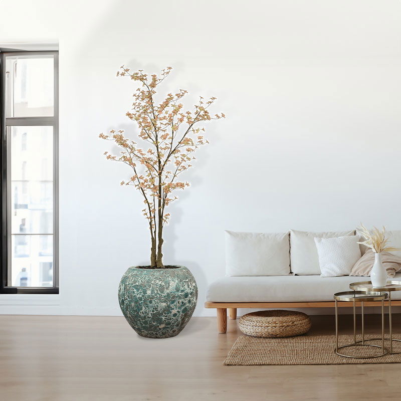 Prachtig grote bloempot met ronde vormgeving. Volledig handgemaakt keramiek en authentiek gebakken in hout gestookte ovens en behandeld met een speciale techniek die de potten een bijzonder effect geven. Zware kwaliteit.