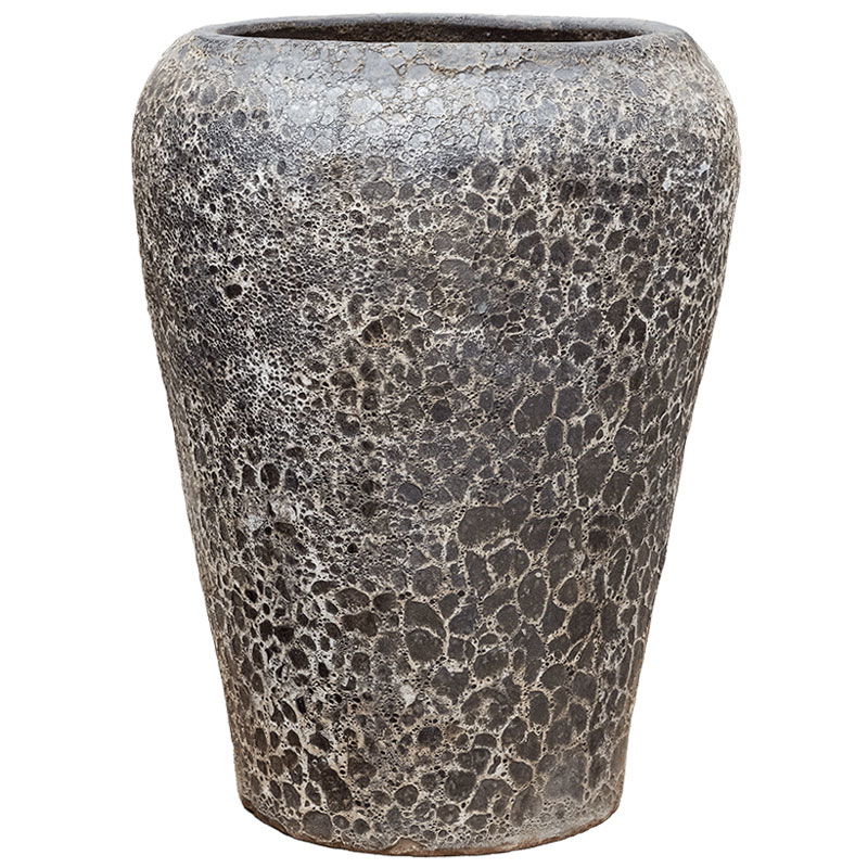 Prachtig hoge bloempot met ronde vormgeving. Volledig handgemaakt keramiek en authentiek gebakken in hout gestookte ovens en behandeld met een speciale techniek die de potten een bijzonder effect geven. Zware kwaliteit.