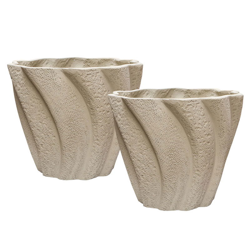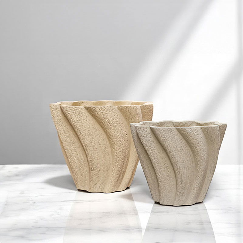 Stijlvolle set bloempotten met een unieke uitstraling en een golvend 3d patroon. Een pareltje voor in je tuin of je interieur.