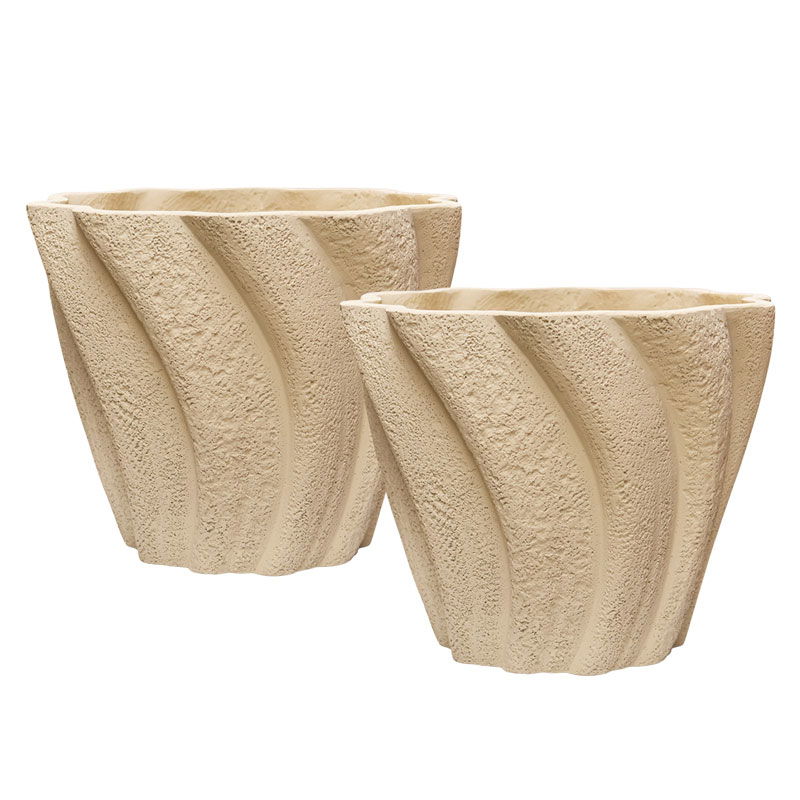 Stijlvolle set bloempotten met een unieke uitstraling en een golvend 3d patroon. Een pareltje voor in je tuin of je interieur.