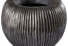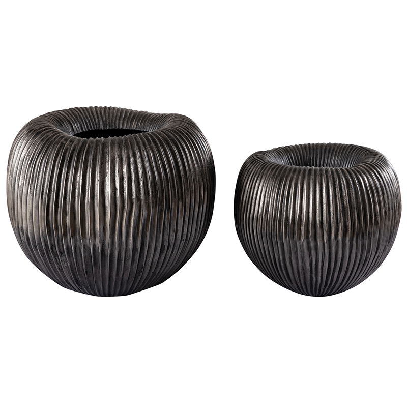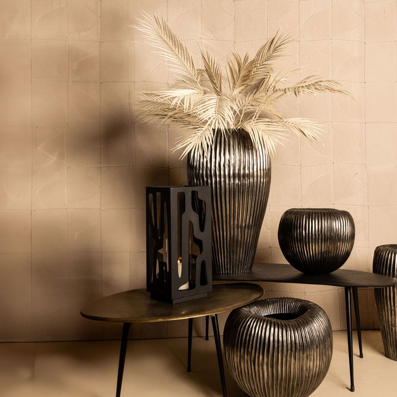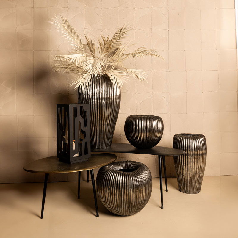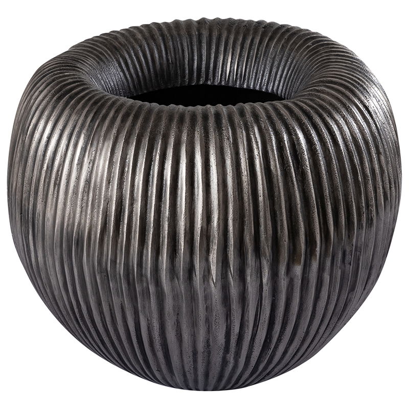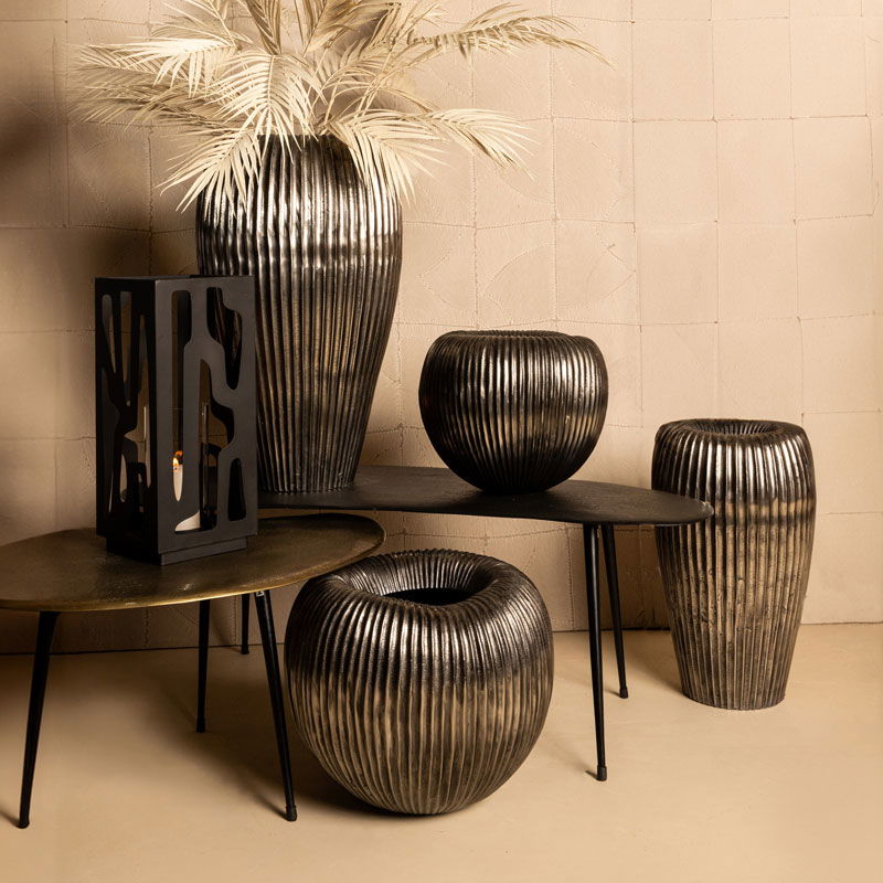 Heerlijk sfeervolle bloempot in oud zilverkleur. De bloempot heeft een opvallende brede rand en een verticale belijning. Handgemaakt en met een luxe, volle uitstraling. Prachtig om te combineren met meerdere potten uit dezelfde set, maar ook mooi als losse bloempot.