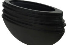 Handgemaakte grote ovalen design bloempot. De bovenzijde heeft brede rand en een modern speelse twist door de bijzondere belijning. High quality polyresin.