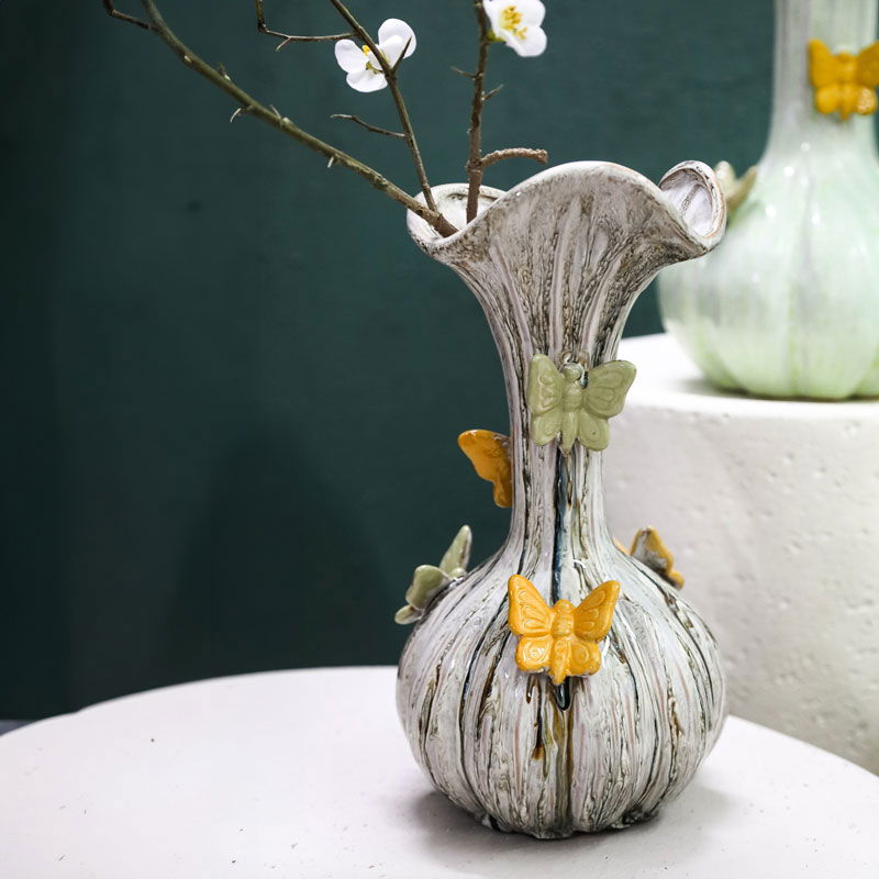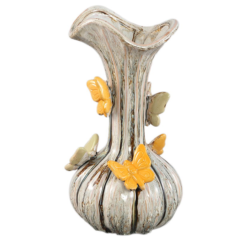 MARAA siervaas met vlinder decoratievaas crème keramiek 28cm