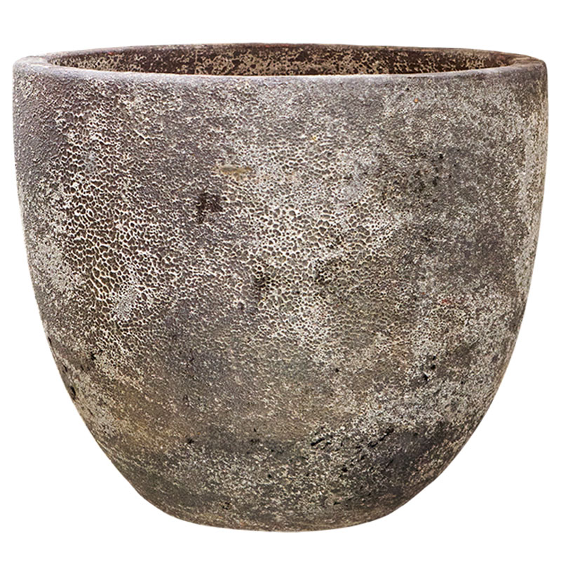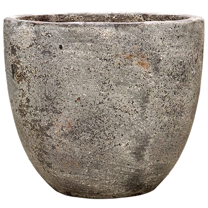 Prachtig ruwe aardse natuurlijke serie met gemeleerde stoere betonnen uitstraling in zachte vormen. Elk stuk is handgemaakt en volledig uniek in kleuring en patroon en van hoogwaardig keramiek. Een pareltje voor in je tuin.