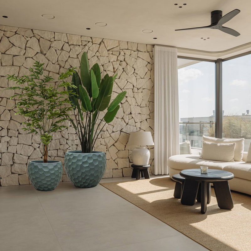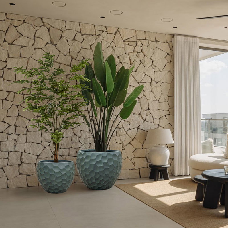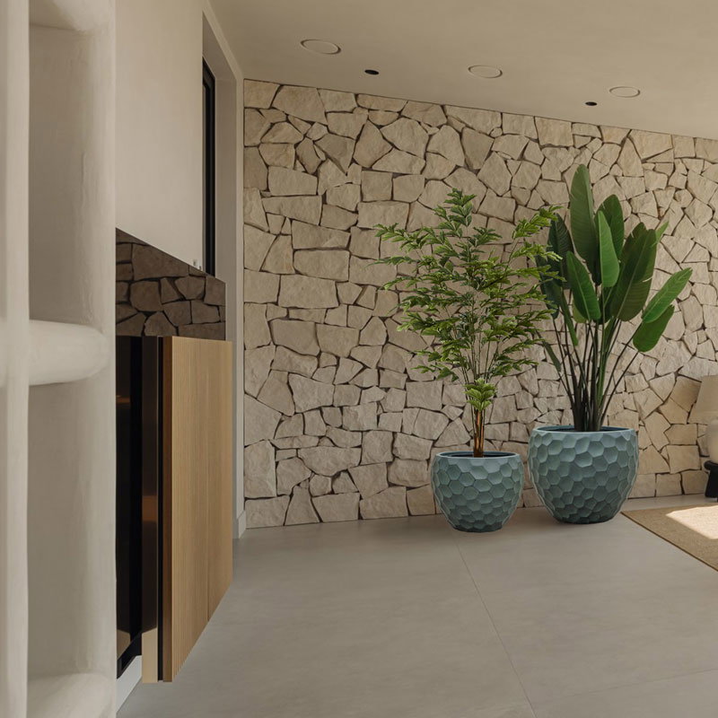 Bijna al onze potterie handgemaakt en daarom uniek in patroon, kleuring en niet 100% waterdicht. Een binnenvaas is ideaal om duurzaam te genieten van alle indoor geplaatste potterie. En om eenvoudig te wisselen van inhoud en styling.