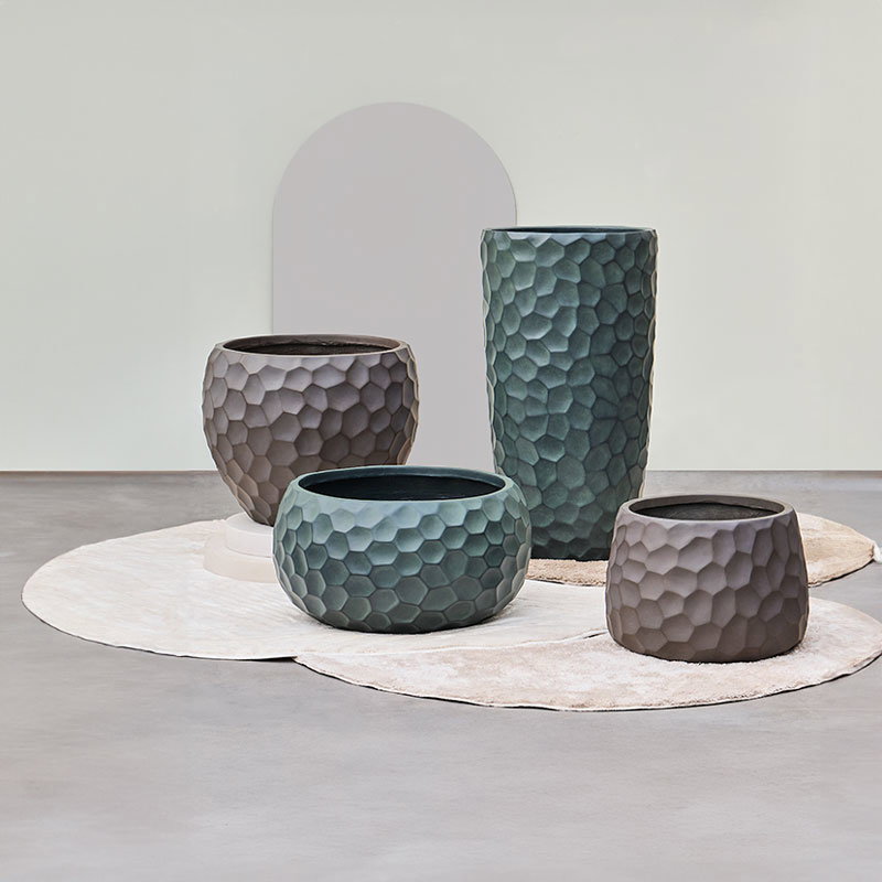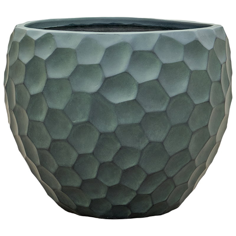 Prachtig vormgegeven bloempot in mat zeegroen. Het reliëf speelt met het licht waardoor je veel diepte krijgt. Met subtiel en opliggend grillig honingraad patroon. Al jaren één van onze favoriete designs in een nieuwe matte uitvoering.