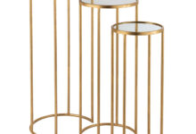 Metalen zuilen goud met spiegelblad set van 3 plantentafels 60cm + 70cm + 80cm