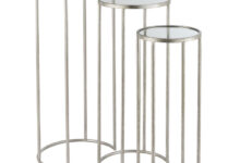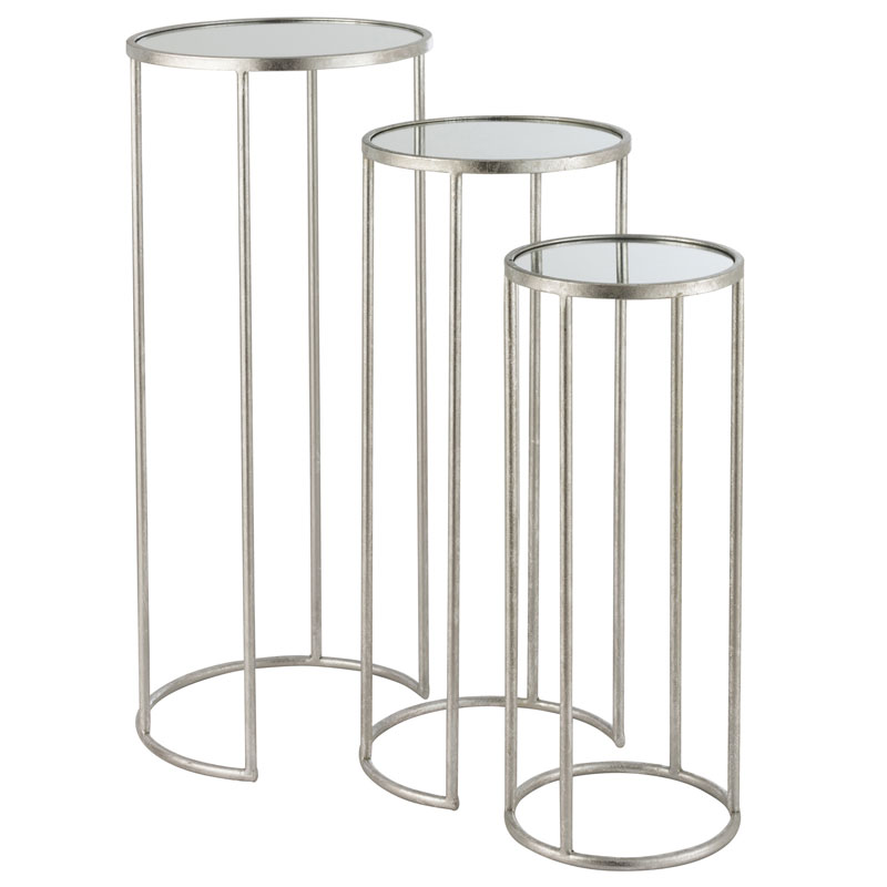 Metalen zuilen zilver met spiegelblad set van 3 plantentafels 60cm + 70cm + 80cm