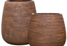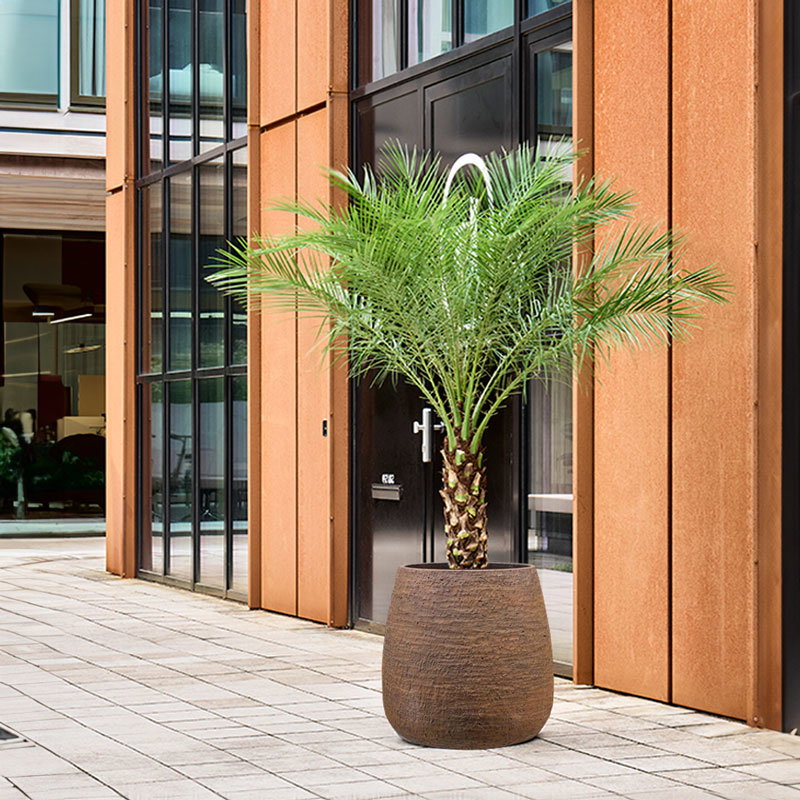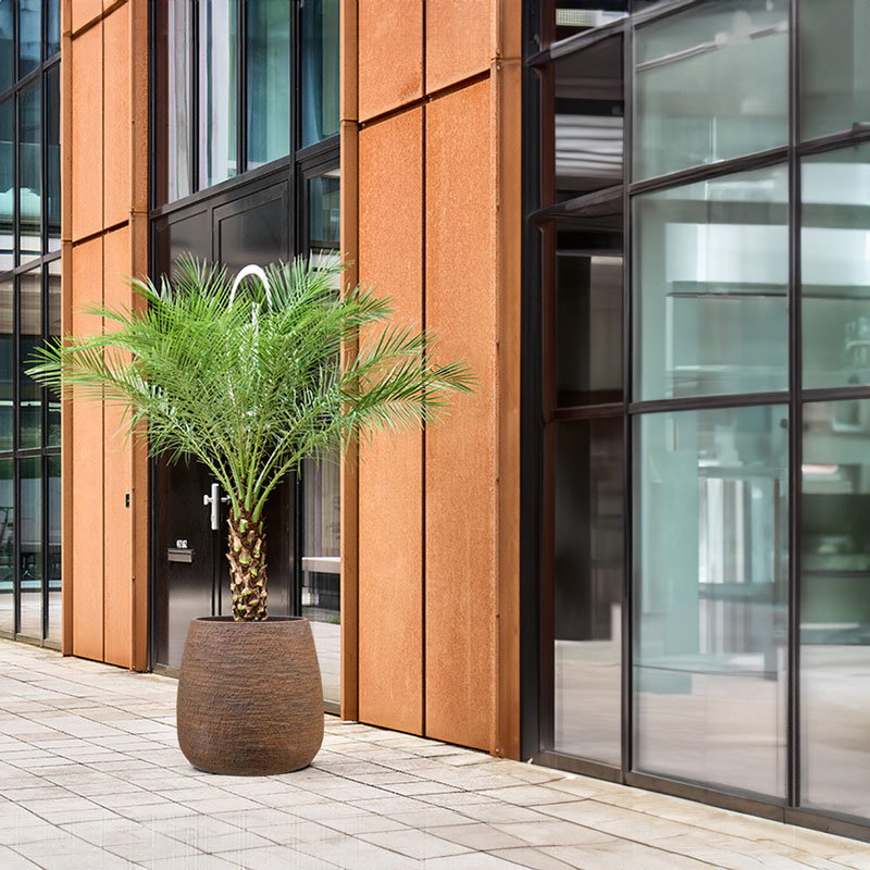 Fijne aardse mat ruwe serie in prachtig zachte vormen voor een speels contrast. Gemaakt van gerecycled materialen en voelt als steen met de structuur van beton maar is vele malen lichter van gewicht en toch oersterk door nieuwste productietechniek van glasvezel en klei.