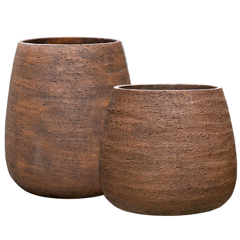 MILOO mat brons bruine bloempotten set buitenpotten in kruik vorm 38cm & 50cm