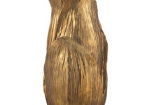 Prachtige en stijlvolle decoratie vaas in antiek goudkleur en met een bijzondere natuurlijke bloem vormgeving. Een pareltje voor op een mooi plekje in je huis.