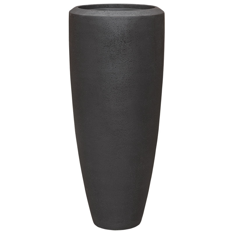 Hoge bloempot in strakke belijning en matte ruwe afwerking met kalksteen uitstraling. Zeer elegant en verfijnd model met ingebouwde uitneembare binnenvaas.