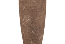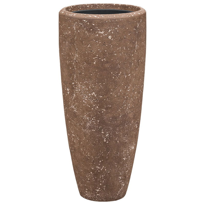 Hoge bloempot in strakke belijning en matte ruwe afwerking met kalksteen uitstraling. Zeer elegant en verfijnd model met ingebouwde uitneembare binnenvaas.