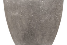 XL bloempot in strakke belijning en matte ruwe afwerking met kalksteen uitstraling. Zeer elegant en verfijnd model.