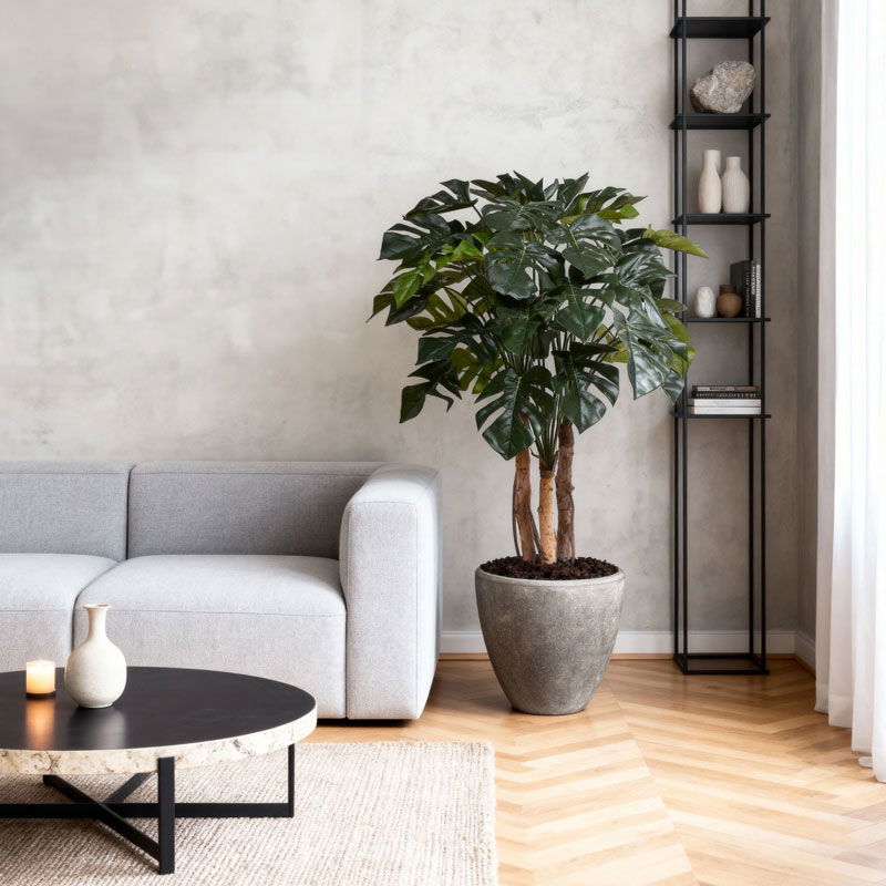 XL bloempot in strakke belijning en matte ruwe afwerking met kalksteen uitstraling. Zeer elegant en verfijnd model.