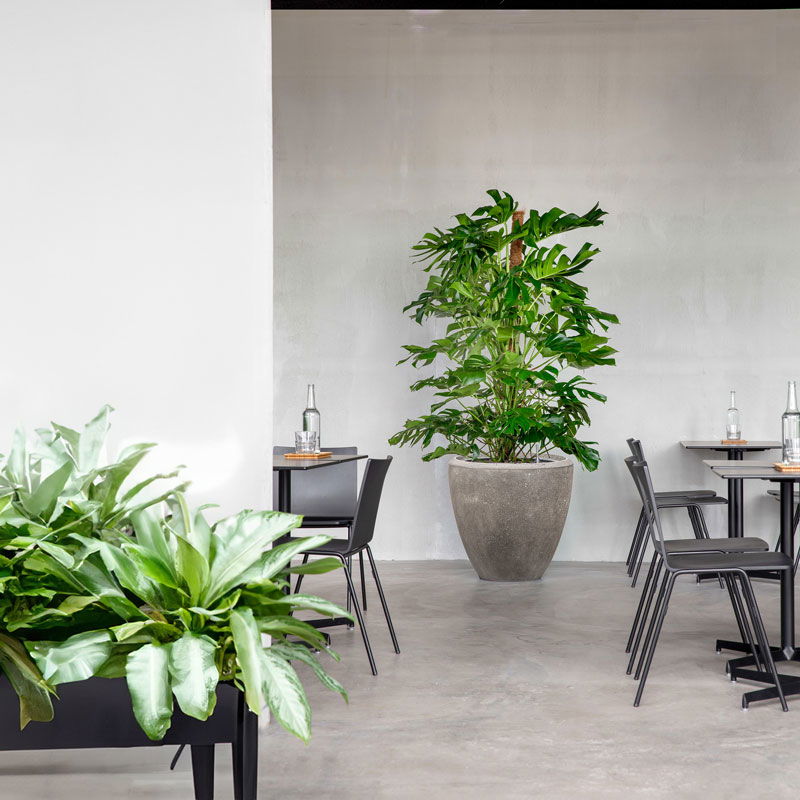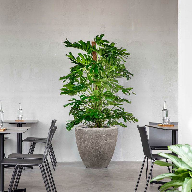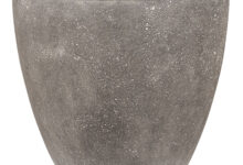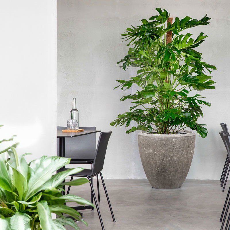 XL bloempot in strakke belijning en matte ruwe afwerking met kalksteen uitstraling. Zeer elegant en verfijnd model.