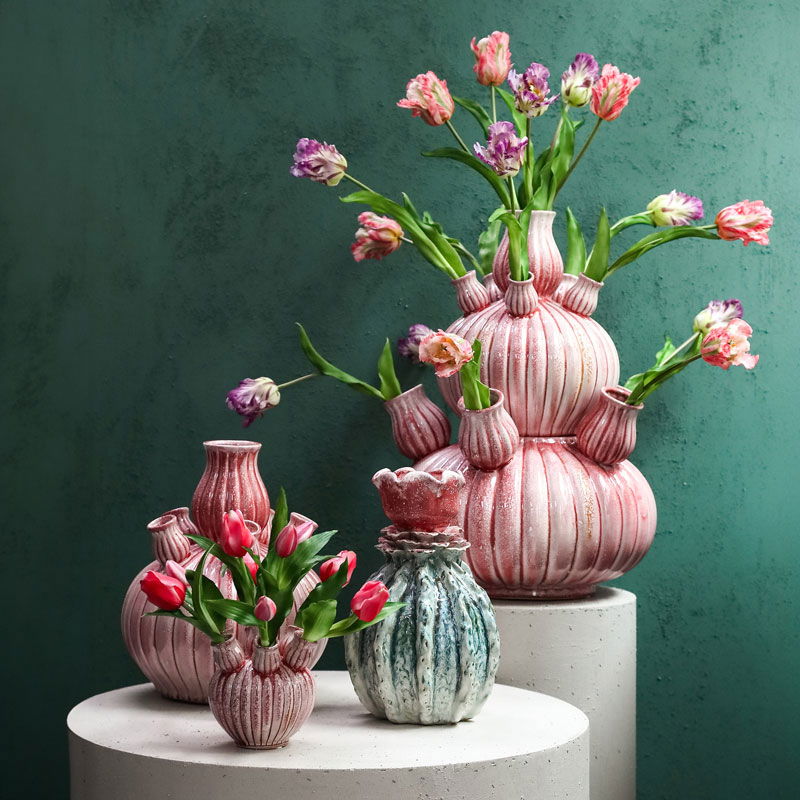 NOLOU grote tulpenvaas roze keramiek vaas voor tulpen 62cm